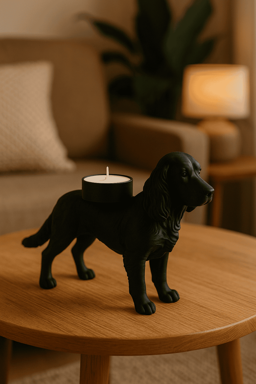 Waxinelichthouder Hond – Engelse cockerspaniël – Uniek Decoratief Theelicht – Stevig & Handgemaakt – Zwart, wit, bruin