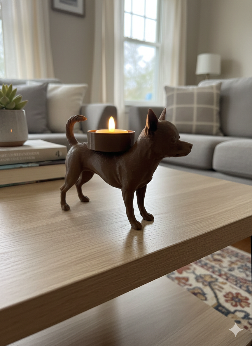 Chihuahua waxinelichthouder – 3D-geprint hondje in Zwart, Bruin of Wit – sfeervolle honden decoratie