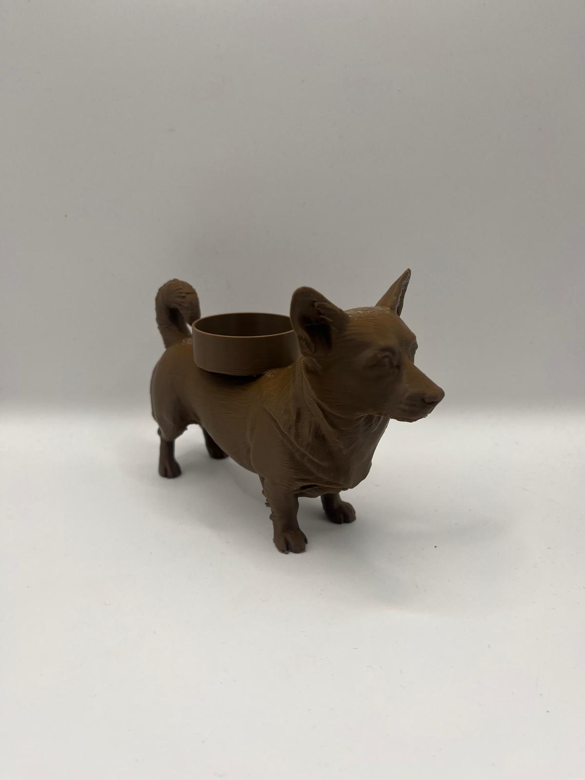 Waxinelichthouder Welsh Corgi – 3D-Geprint Hond Beeldje – Zwart | Wit | Bruin