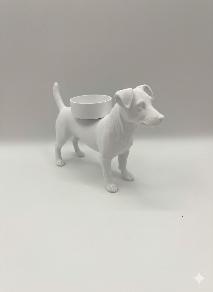 Jack Russell waxinelichthouder – 3D-geprint hondje in Zwart, Bruin of Wit – sfeervolle honden decoratie