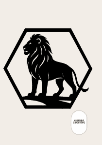 Wanddecoratie Leeuw – Silhouet in Hexagon Frame – PLA – Zwart | Antraciet | Grijs | Wit – 175×151 mm