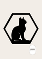 De zittende kat is met zorg vormgegeven in een vloeiende silhouetstijl en gevat in een strak zeshoekig frame. Door de eenvoud van het ontwerp krijgt de houding van de kat alle aandacht – alert, nieuwsgierig en toch in volle rust. Een perfecte balans tussen karakter en kalmte.