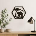 Een olifant straalt kracht uit, maar ook rust. Hij beweegt langzaam, doelgericht, onverstoorbaar. In deze wanddecoratie olifant zie je die energie gevangen in een krachtig silhouet: een olifant onder een typische Afrikaanse boom, met op de achtergrond een zacht golvend berglandschap. Alles gevat in een strak zeshoekig frame. Het resultaat is een wanddecoratie die evenwichtig, stijlvol en symbolisch is.