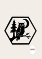 Stil zit hij op zijn tak, de ogen wijd open, wakend over het bos. De uil is een dier met een diepe symboliek. Hij staat bekend als de bewaker van de nacht, het symbool van wijsheid, intuïtie en inzicht. In deze wanddecoratie uil komt dat karakter prachtig tot uiting. Het silhouet toont een uil in de nacht, op een stevige tak, met een dennenboom achter hem en de maan erboven. Een sfeervol beeld gevangen in een strak zeshoekig frame – mystiek én modern tegelijk.